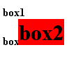 absolute-position the second box2, overlapping box1 and box3 ( It doesn't work inside table cell) | <div> <h4>box1</h4> <h1 style="position:absolute; left:30px; top:20px; background-color:red"> box2</h1> <h4>box3</h4> </div> |
